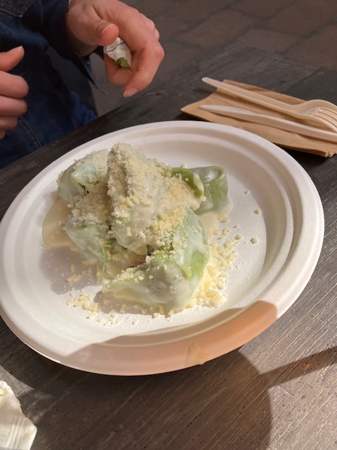 Let’s not forget pasta. There is a local pasta dish called Balanzoni which are large spinach tortellini type pasta filled with ricotta, spinach, cheese, and chopped …… drum roll please, mortadella! It’s served with a butter and sage sauce. Mamma Mia, it is perfecto!
