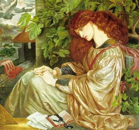 The work was painted at the start of Rossetti's affair with Jane Morris, who modelled for the picture. As he was to do with Beata Beatrix (1870), Rossetti chose a tale by Dante Aligheri (from Purgatorio) to illustrate his love for his model. The story tells of a woman whose husband imprisoned and later poisoned her: Rossetti wanted the world to believe the fantasy with which he was deluding himself – that William Morris kept Jane against her will. He continued this theme, as shown in Proserpine.