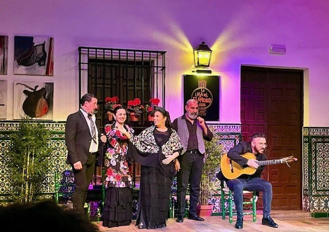 Sevilla is a sublime place and one that doesn’t get the respect that it deserves. Every where we went, I found myself almost in tears from the beauty I witnessed. We booked a flamenco show in a historic intimate venue, and I looked forward to the entertainment. There was a guitarist, two singers, and a man and woman flamenco dancers. A simple stage, no food or drink to detract from the performance, lights dimmed and magic! The dancers moved so gracefully and were physically so in control of their bodies, that I was mesmerized and started crying. The emotional wailing in the songs, the guitarist’s skill and the improvised dance steps to sync with the music was pure joy! The dancers were top performers in Flamenco and it showed though their skill and physical control of their bodies when they gracefully moved and tapped on the wooden floor. Bravo!